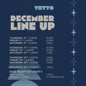 The Tetto winter garden is the place to be this festive season! We’ve got DJs every Thursday, Friday and Saturday plus plenty of heaters and our retractable roof keeping things cosy!